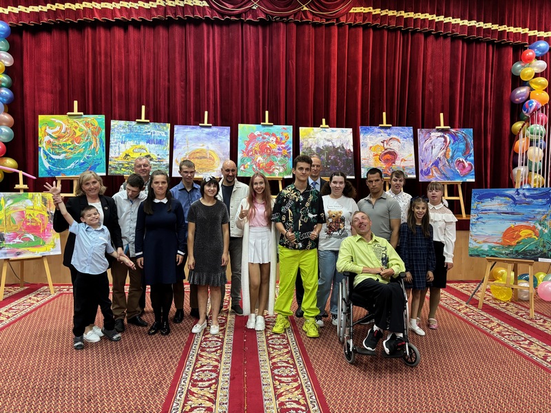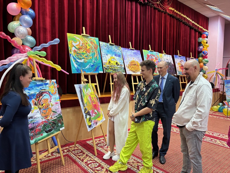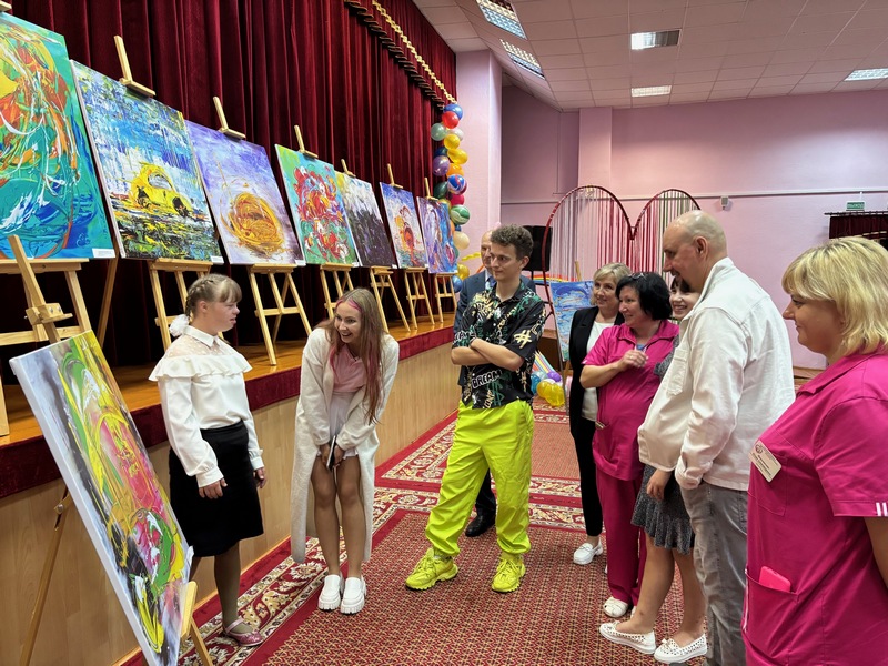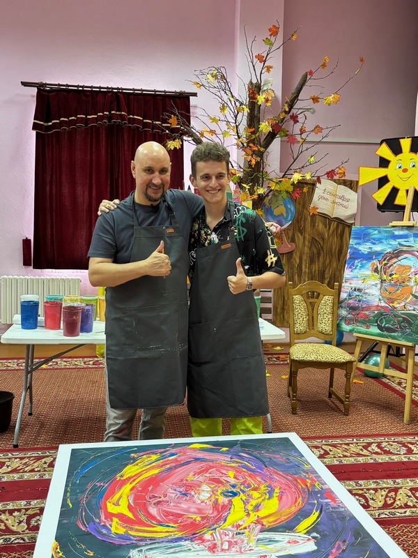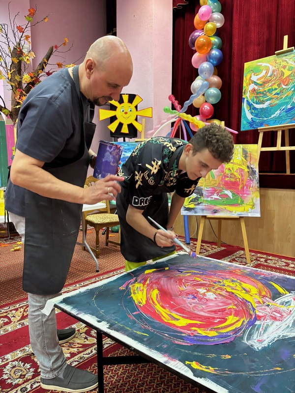 05/09/2025 Вядомы блогер Зміцер Сіўчык піша карціну ў суаўтарстве з Сяргеем Дасам у Чэрвеньскім дзіцячым сацыяльным пансіянаце «Ігуменскі»